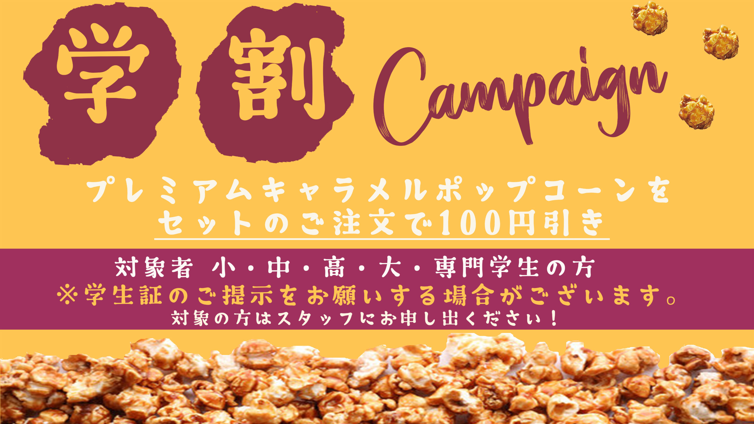 9/1(月)より飲食売店にて、『学割キャンペーン』を開始いたします!