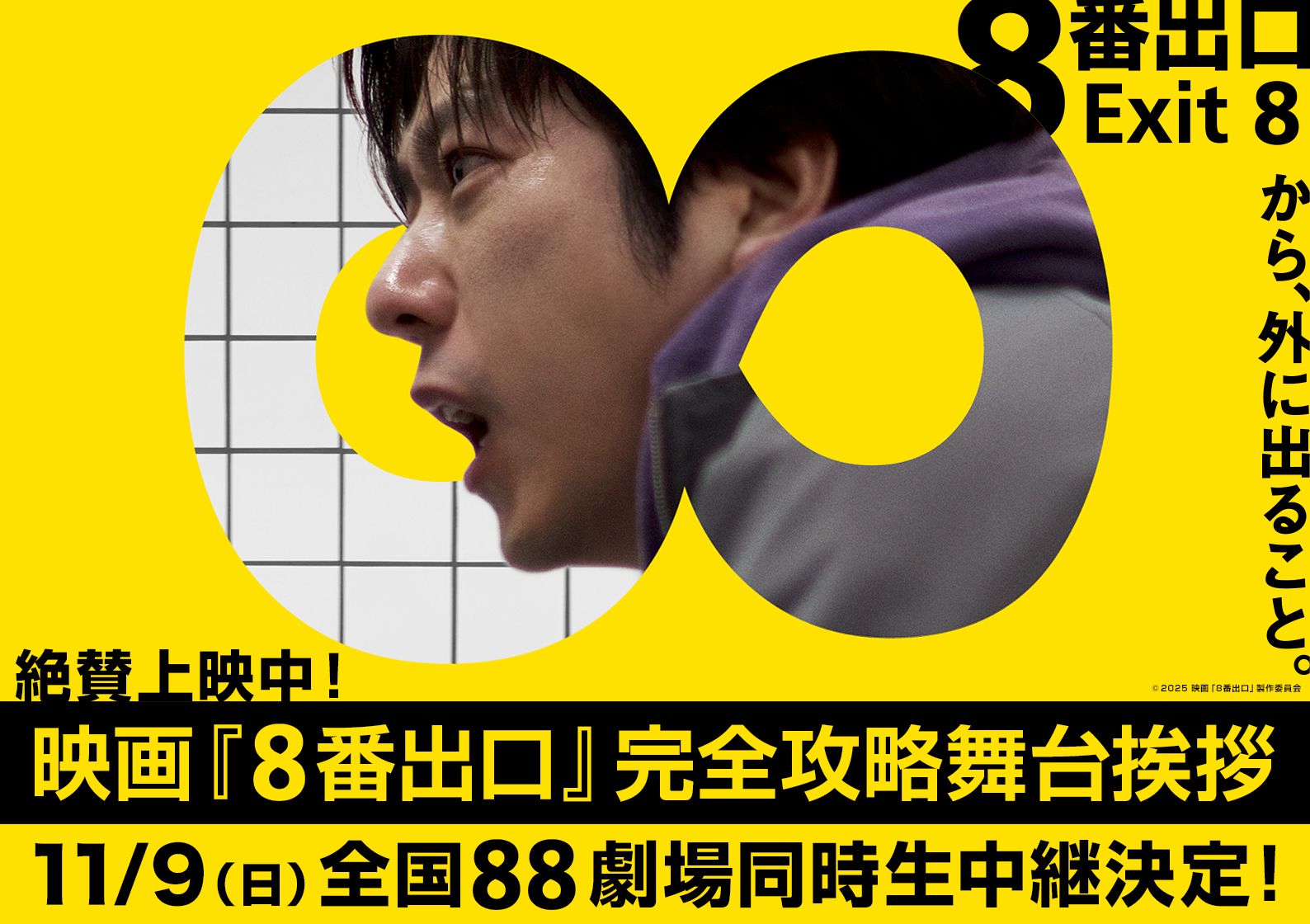 映画『8番出口』完全攻略舞台挨拶&全国88劇場同時生中継を下記日程にて開催いたします!