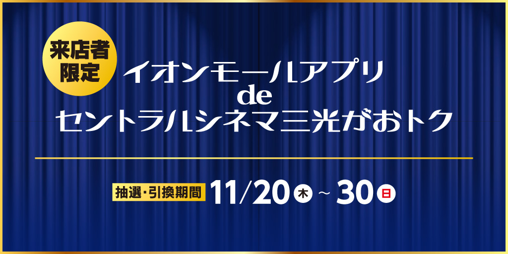 イオンモールアプリをダウンロードし、抽選に応募!期間中、各日100名様へ500円で鑑賞できるチケットをプレゼント!詳しくは画像をタップ!