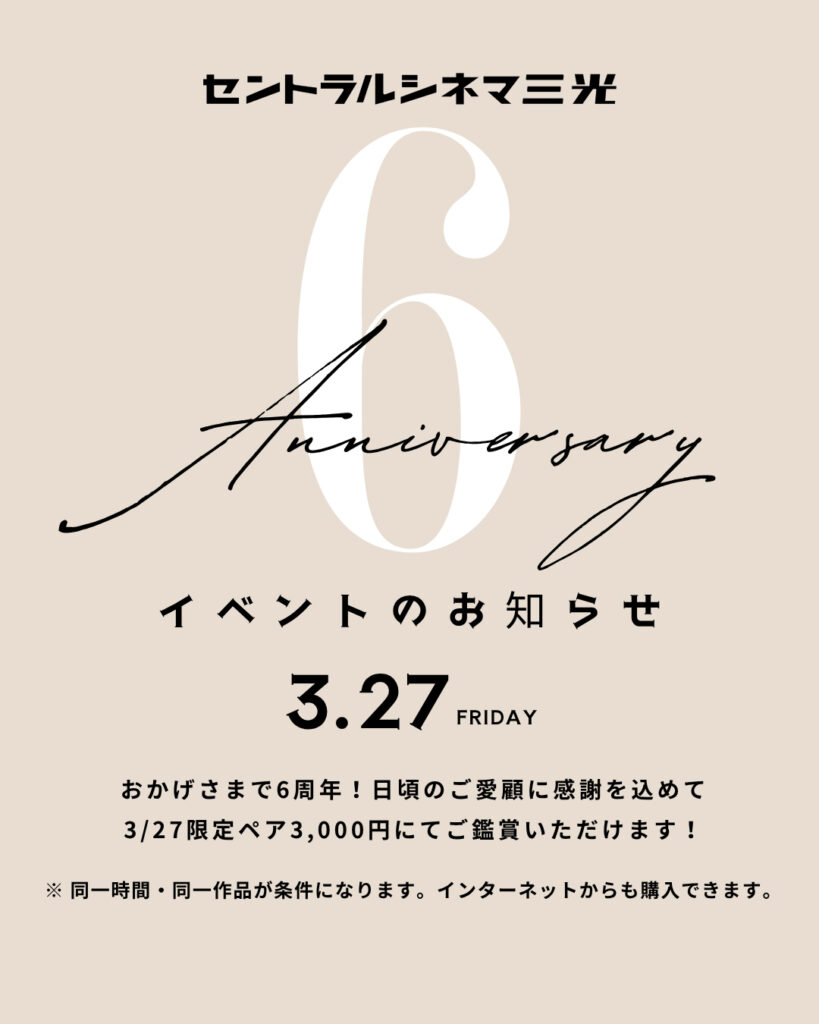 セントラルシネマ三光をいつもご利用いただき、誠にありがとうございます。