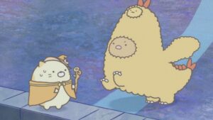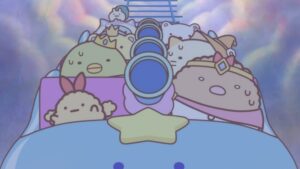 水不足を解決するためのヒントが「みずのしんでん」にあることを知り、すみっコたちも加わって、雲の上の大冒険にいざ、出発!
